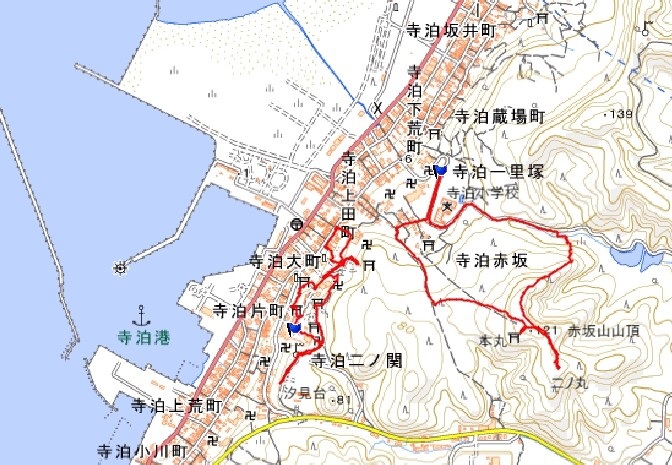 | 寺泊:赤坂山(121m)とロマンス街道 |