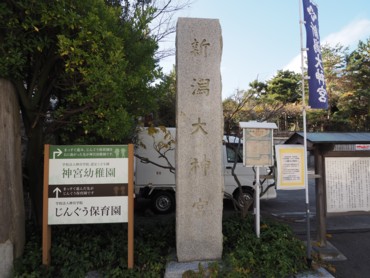ここから街中へ戻る。15分程で新潟大神宮。白山神社や護国神社は知っていたが、こんな神社が新潟市内にあるとは知らなかった。名前からして大仰なのでもっと知られていても良さそうだが、知らないのは私だけ? 新潟大神宮は、伊勢神宮の御祭神、天照皇大神(内宮)、豊受大神(外宮)の二柱を主祭神としてお祀りしています、とのこと。これだけでもすごい神社と思われるのに。ここも住宅街の中にあって駐車場も少なく建物も大きくなく、大勢来られても困るかもしれないが。 |