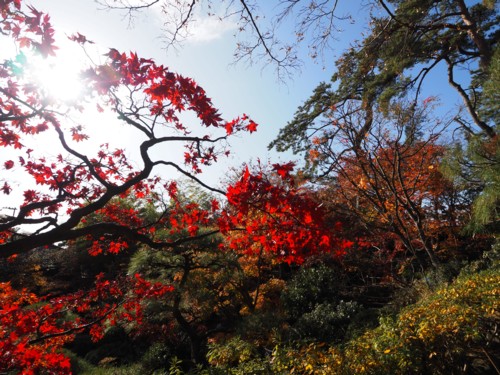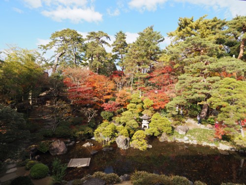 最後は旧齋藤家別邸でお庭を拝見。新潟大神宮からはすぐ。入場料一人300円。新潟三大財閥の1つ、豪商・齋藤家の4代目喜十郎が大正7年に別荘として造った建物で、総敷地面積1,300坪の敷地内には庭園と建物がある。庭園の紅葉は終盤だがほぼ見頃と言ってもいい位とてもきれいだった。 |