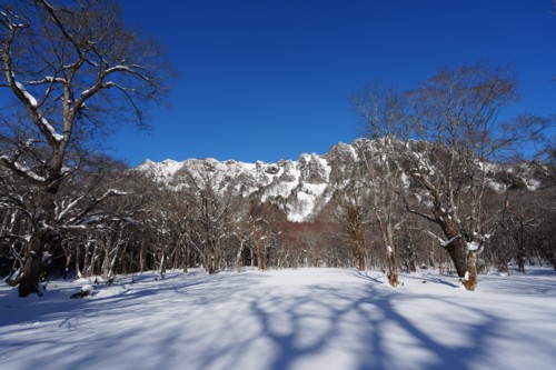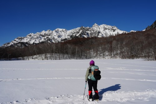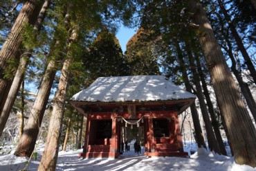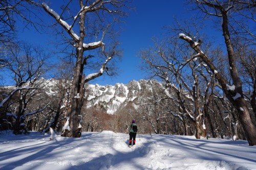 | また寒波が来る前のつかの間の晴れ。それで戸隠高原でスノーシュー歩き。戸隠キャンプ場から随神門。奥社はこの時期進入禁止。それでそのまま鏡池へ。キャンプ場から随神門まではトレースがなくラッセルとなった。 |