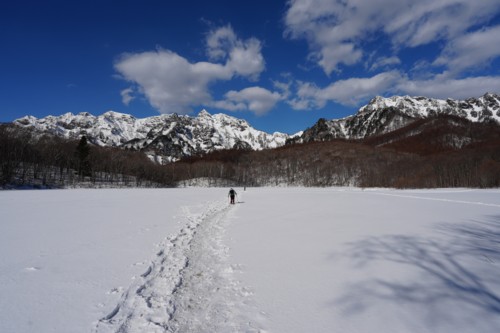 10時30分、下山。来た道をひたすら戻る。11時10分、随神門。ここからはまた誰もいなくなる。自分達で付けたトレースを追うのみ。そしたら途中で男女2人組と単独の男性が我々に追いついてきた。 男女2人組は何と外国人。この人達はどこから来たのか理解に苦しむ。外国人ということもあって言葉を交わすことはなく疑問は解けなかった。 単独の男性も話しかけにくい雰囲気で、つぼ足でどんどん先に行った。12時40分、車に戻った。単独の男性は車道を下っていった。その後、我々が車まで走っていると何と黒姫山の大橋登山口方面に歩いていた。本当にどこから歩いてどこへ行くのかまったく理解不能だった。 男女2人組の外国人はキャンプ場まで確認出来たが、その後どうしたかはわからずこちらも理解不能だった。天気は下り坂で雪も降ってきた。あの外国人は来た道を戻ったのかちょっと心配になった。帰りは上信越自動車道妙高高原ICの高速に乗り、自宅着14時45分。高速道路では雨。本当につかの間の晴れだった。 |
