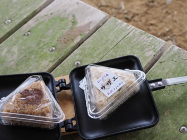 | 薬師堂跡のキクザキイチゲ | ホットサンドメーカーで焼きおにぎり |