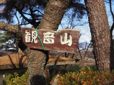 白衣大観音の裏に遊歩道がありそこを登ると観音山山頂。時間は9時25分。一帯は野鳥の森となっていた。山頂にはちゃんと山頂看板もあった。木々に囲まれているが木の間から妙義山が見えた。 |