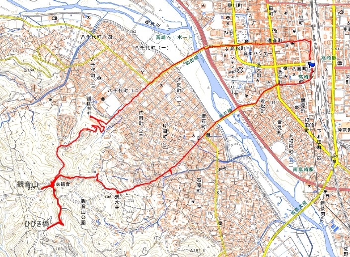 先週・先々週に続いて新幹線駅から街歩き、なんちゃって山登り。今週は少し遠出をして高崎駅。高崎駅から街歩きをして清水寺・高崎白衣観音。そして観音山山頂を踏み、帰りは群馬県護国神社を回って駅に戻った。 今年6月に大学の仲間と高崎白衣大観音を観光した。その時は車で行ったので白衣大観音だけを見学したが、あとで調べたら白衣大観音の奥に観音山という山頂があることがわかった。それでまた熊の心配のないなんちゃって山登りをすることにした。 |