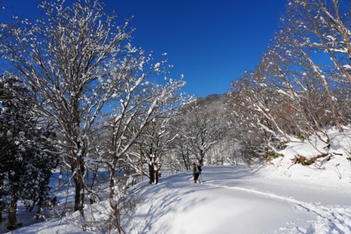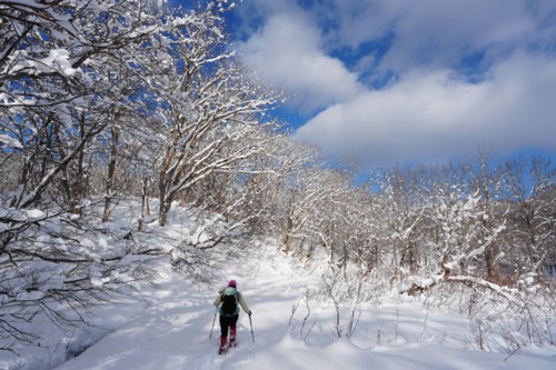 | あけましておめでとうございます。正月休み最終日に晴れマークが出たので登り初めして来ました。登ったのは斑尾高原でスノーシュー歩き。昨年1月5日と同じコースを歩いた。沼の原湿原手前除雪終点から希望湖トレイル展望地を登り、沼の原湿原と東湿原を周遊した。沼の原湿原手前除雪終点から夏の駐車場まではトレースがあったがその後は全部ラッセルとなった。 展望地からは妙高山も見えた。沼の原湿原でスノーシュー歩きは何度もしているが、今回初めて東湿原もスノーシューで歩いた。今年はまだ全然雪は少なくちょっと物足りない感じもあったが、それでも予報通り快晴の空に絶景の連続だった。 |