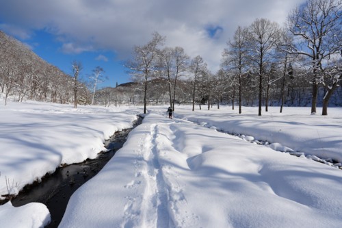 10分で再び沼の原湿原駐車場。昨年はここから沼の原湿原へ向かったが今年はまず東湿原へ向かう。夏場は何回か行ったことはあるが雪の季節は行ったことがなかったので行ってみる。 |